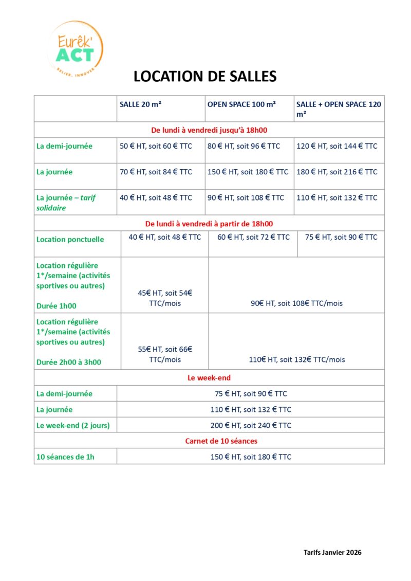 Réservation via mail : eurekact34@gmail.com ou téléphone : 06 08 23 63 74
